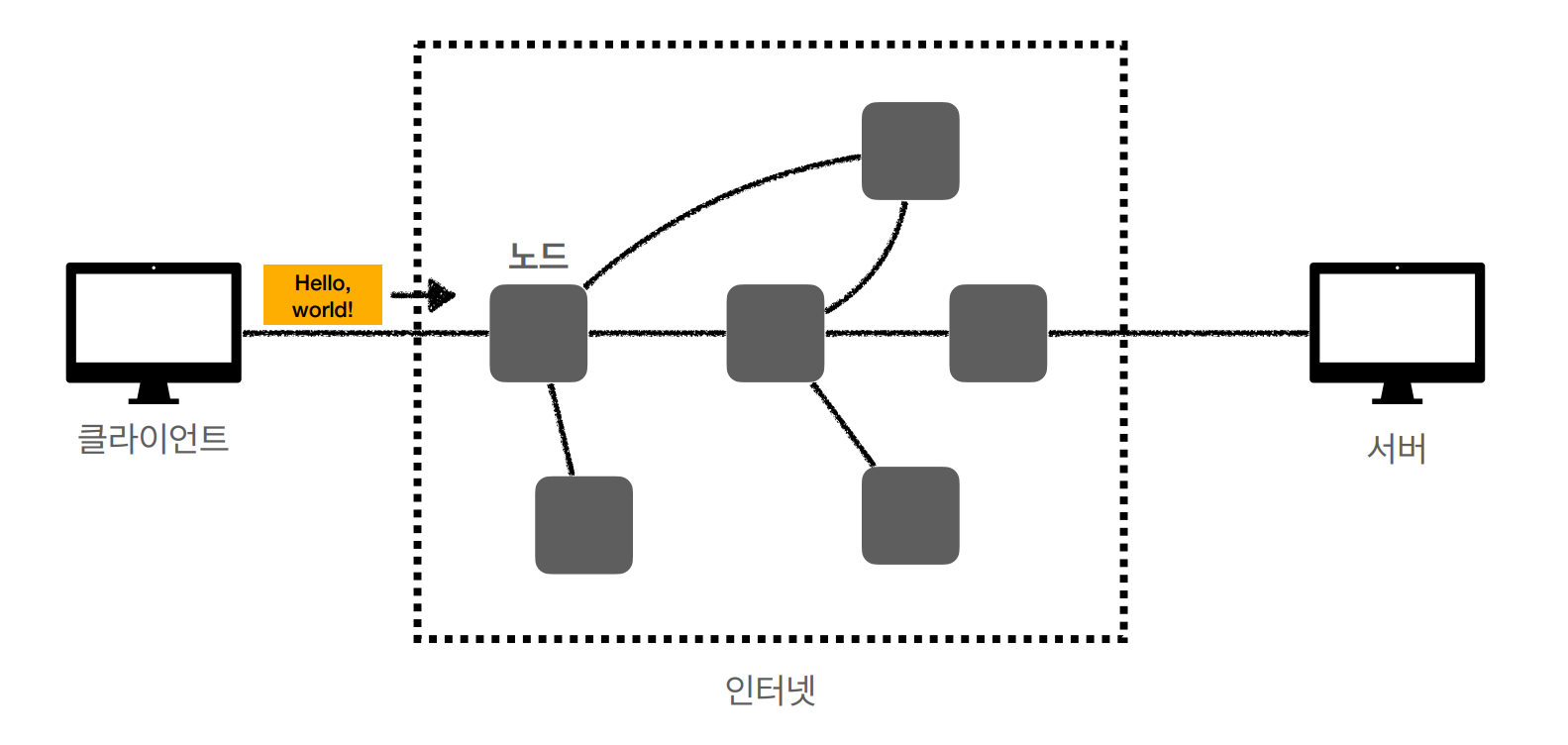 - IP Packet에 담겨 목적지까지 도달하기가지 노드간의 이동을 통해 이루어진다.