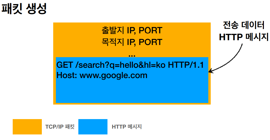 - TCP/IP 패킷 생성, HTTP 메시지 포함