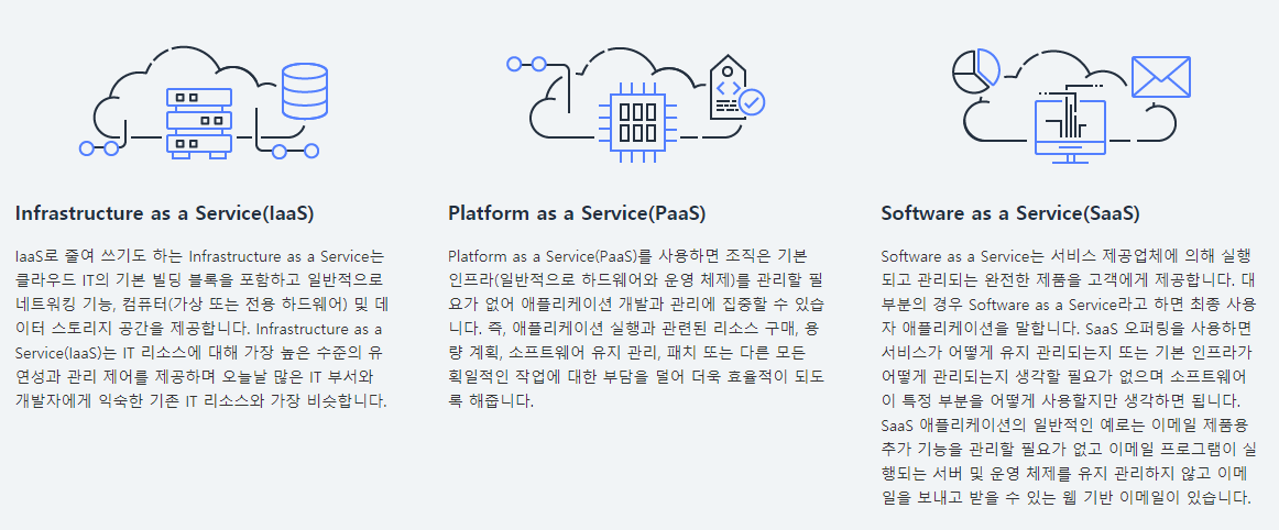 | 비용 | 저렴한 초기투자 비용 시간에 따른 비용 예측가능 |