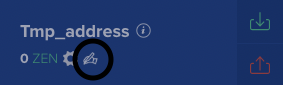 -> 우측 하단의 그림과 같이 ⓘ 버튼을 선택하면 지갑의 주소를 복사할 수 있습니다. (ZEN 무료 채굴 시, 이 주소를 연결)