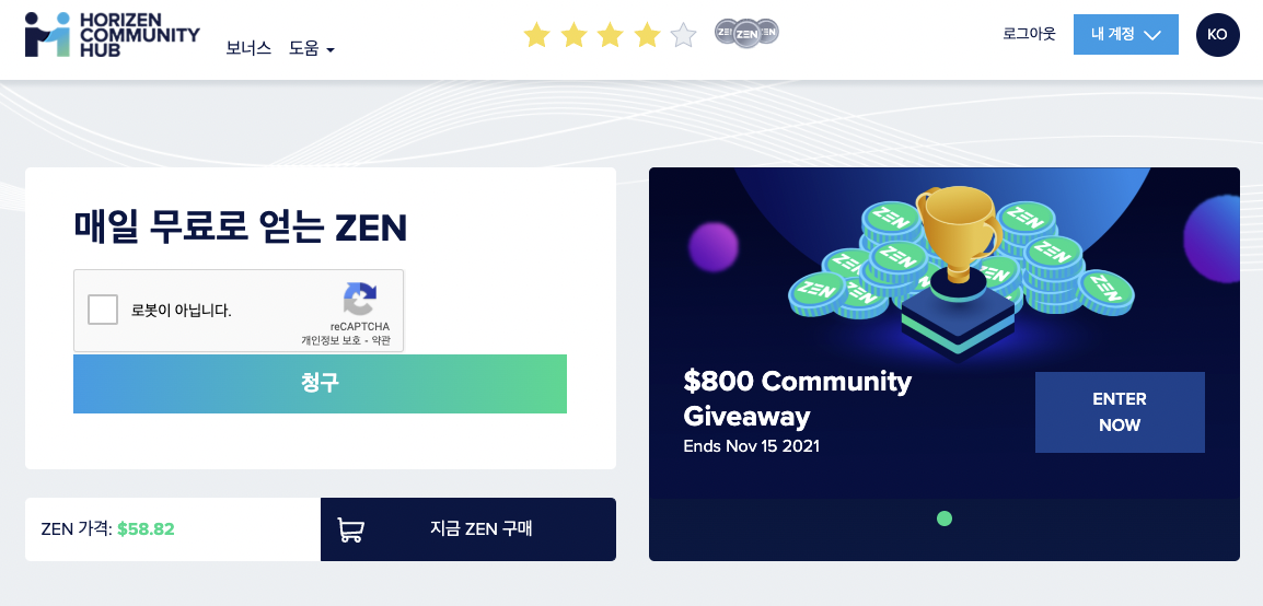 2021.12.16 - [코인/호라이젠(ZEN)] - [호라이젠(ZEN)] 호라이젠 무료 채굴량 - getZen