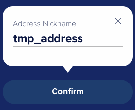 -> Add Address 버튼을 선택하여 Address Nickname 입력 후 Confirm 버튼을 누르면 아래 그림과 같이 Address가 생성됩니다.