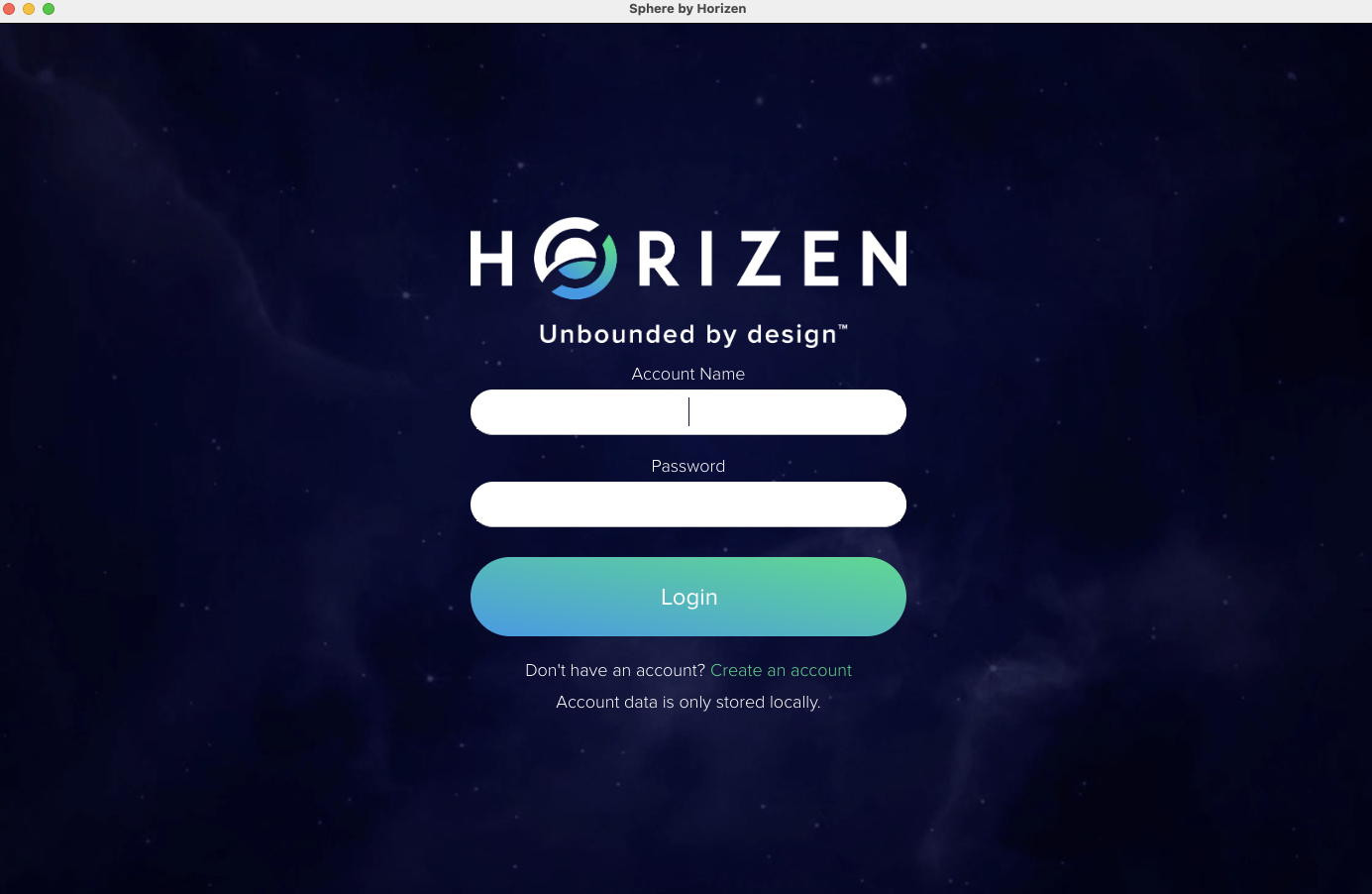 2) APP을 실행 후, Create an account 버튼을 선택하여 계정을 생성합니다. (다른 컴퓨터로 접속시, 새로 생성해야함)