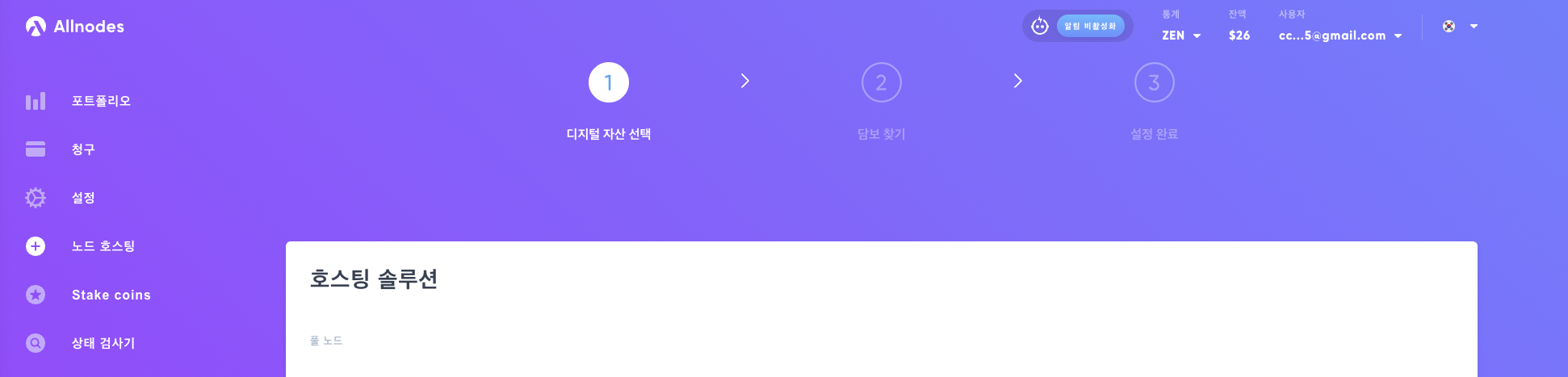 4) 왼쪽 배너의 노드 호스팅 메뉴를 선택하여 노드 호스팅 작업을 진행합니다.