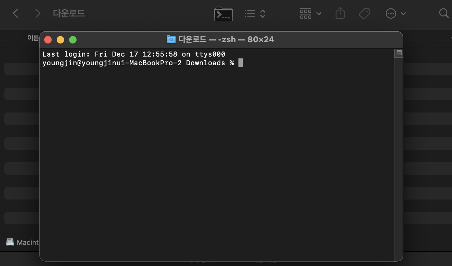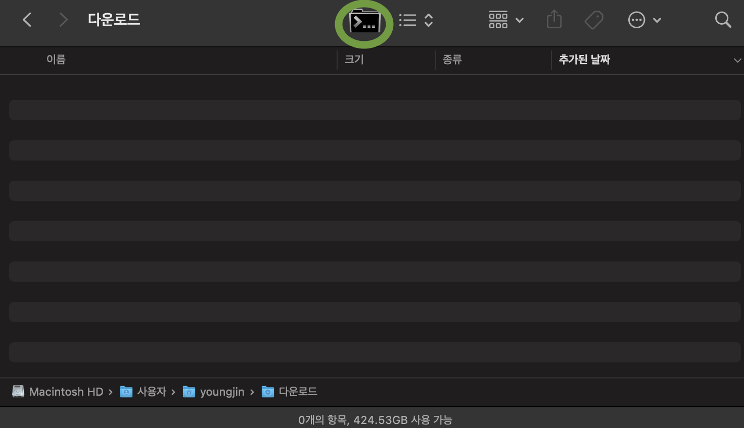 1) 터미널에서 열고 싶은 경로의 디렉터리로 파인더에서 이동한다.